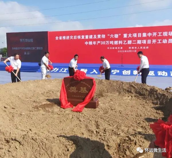 8月31日上午,全省推进灾后恢复重建及贯彻“六稳”重大项目集中开工现场推进会蚌埠分会场暨中粮年产30万吨燃料乙醇二期项目开工动员会召开。